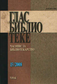 Глас библиотеке, часопис за библиотекарство. Гл. и одг. уредник Даница Оташевић, уредник Марија Орбовић, рецензент др Борјанка Трајковић. Чачак: Градска библиотека „Владислав Петковић Дис“, 2008.