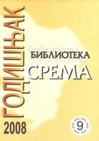Годишњак библиотека Срема број 9. Гл и одг. уредник Весна Петровић. Сремска Митровица: Библиотека „Глигорије Возаревић“, 2008.