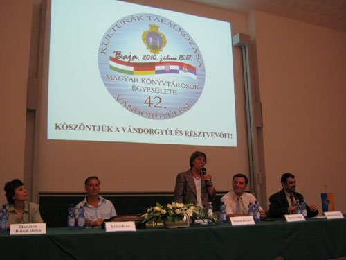 Četrdeset druga godišnja konferencija mađarskog bibliotečkog društva odvijala se na "Etvoš Jožef" univerzitetu. Svečanom otvaranju godišnje skupštine prisustvovalo je oko 300 bibliotekara iz cele Mađarske, a predsedavali su predsednica Društva prof. Bakoš Klara, predstavnik Ministarstva kulture Mađarske, nekoliko delagata iz uprave Društva, kao i predstavnici lokalne uprave i biblioteka Baje. Pozvani gosti iz susednih zemalja bili su posebno predstavljeni i srdačno pozdravljeni.