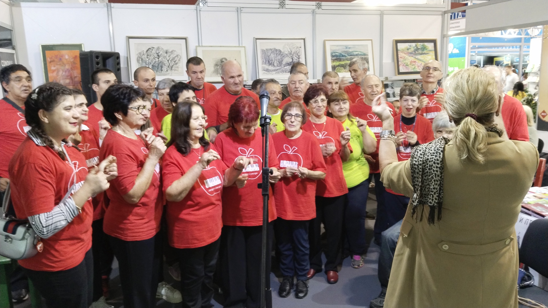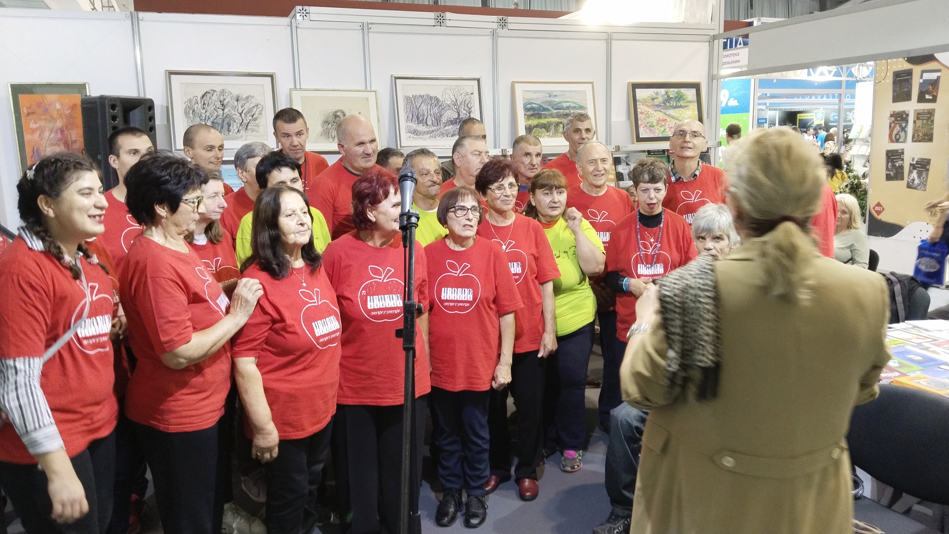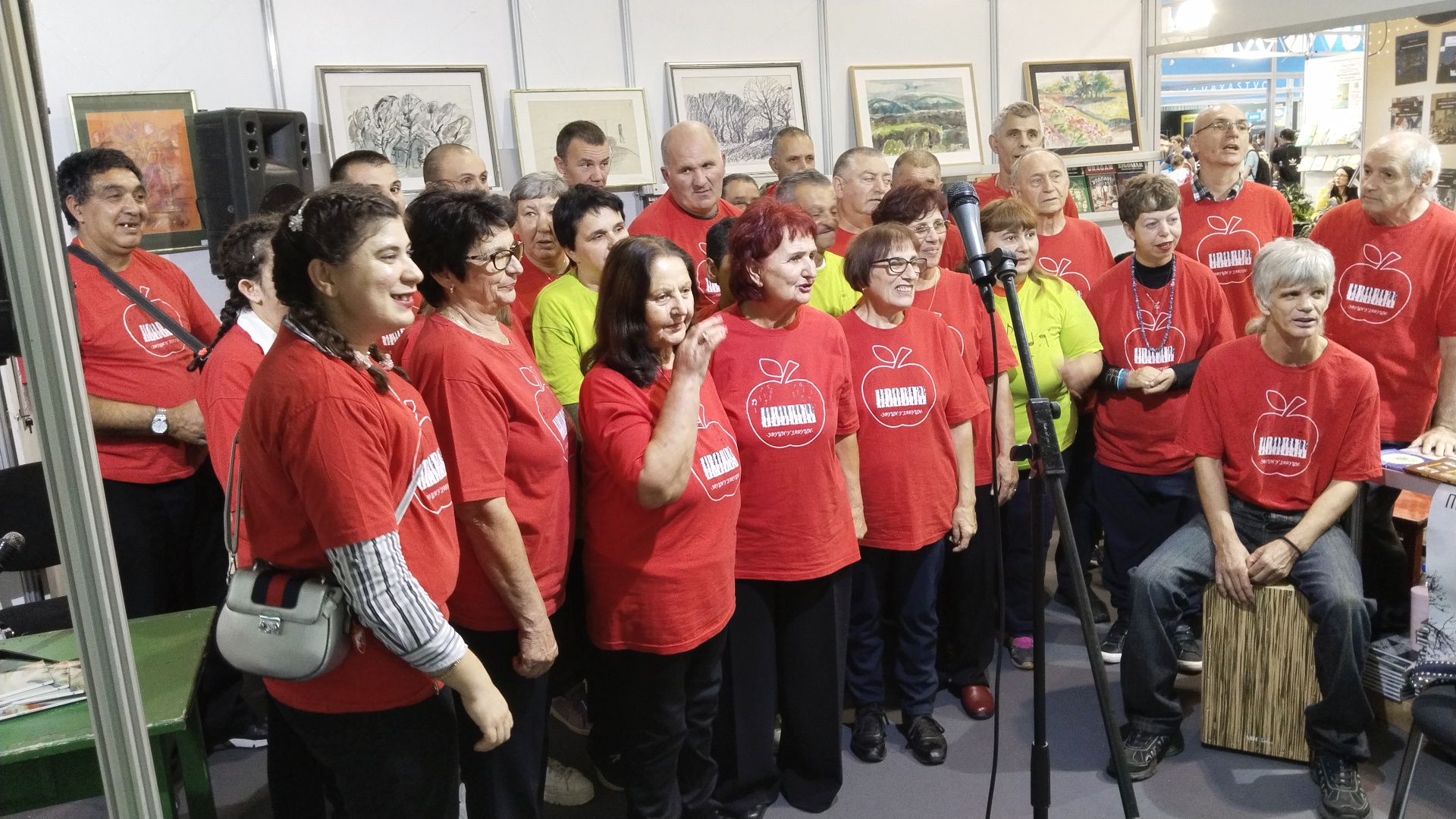 Тридесетак чланова хора отпевало је више духовних и старих српских и македноских народних песама, а њихов наступ је топло примљен од стране сајамске публике у Хали 4 Београдског сајма, где је смештен градски штанд. Хором је дириговала Олгица Илић Митевски, која уз подршку колеге Ивана Караклића, у оквиру радне терапије, води ову групу корисника.